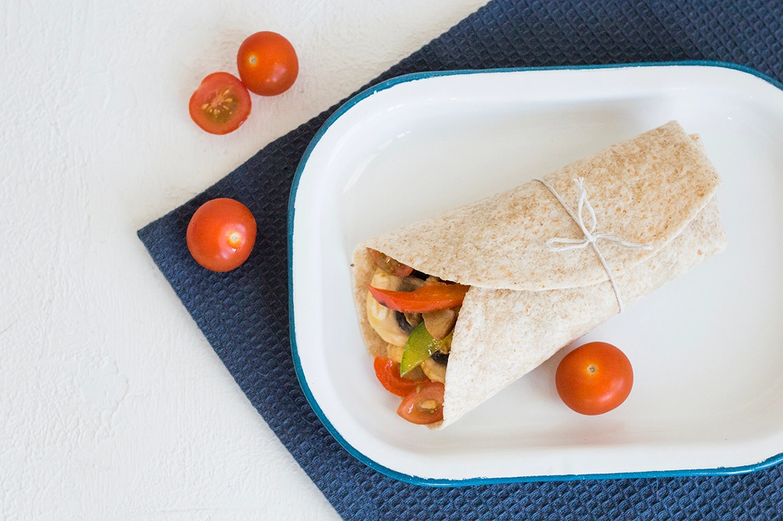 Heat the tortillas according to packet instructions. Evenly spread each tortilla with egg, and vegetable mix, plus the diced tomato.